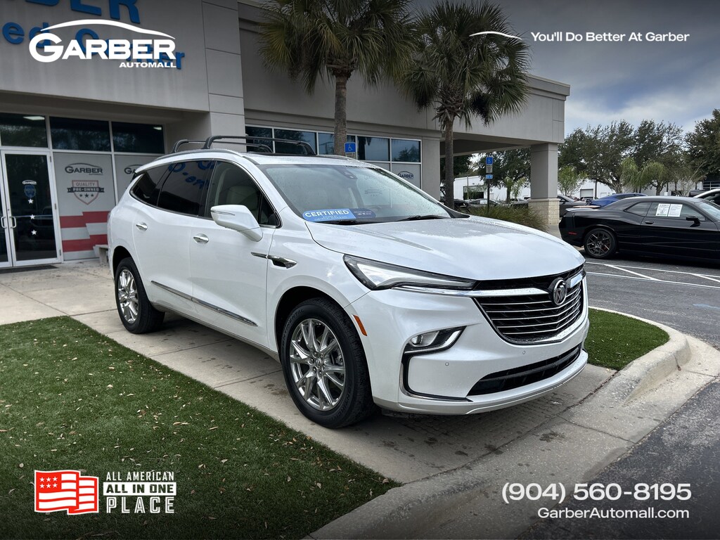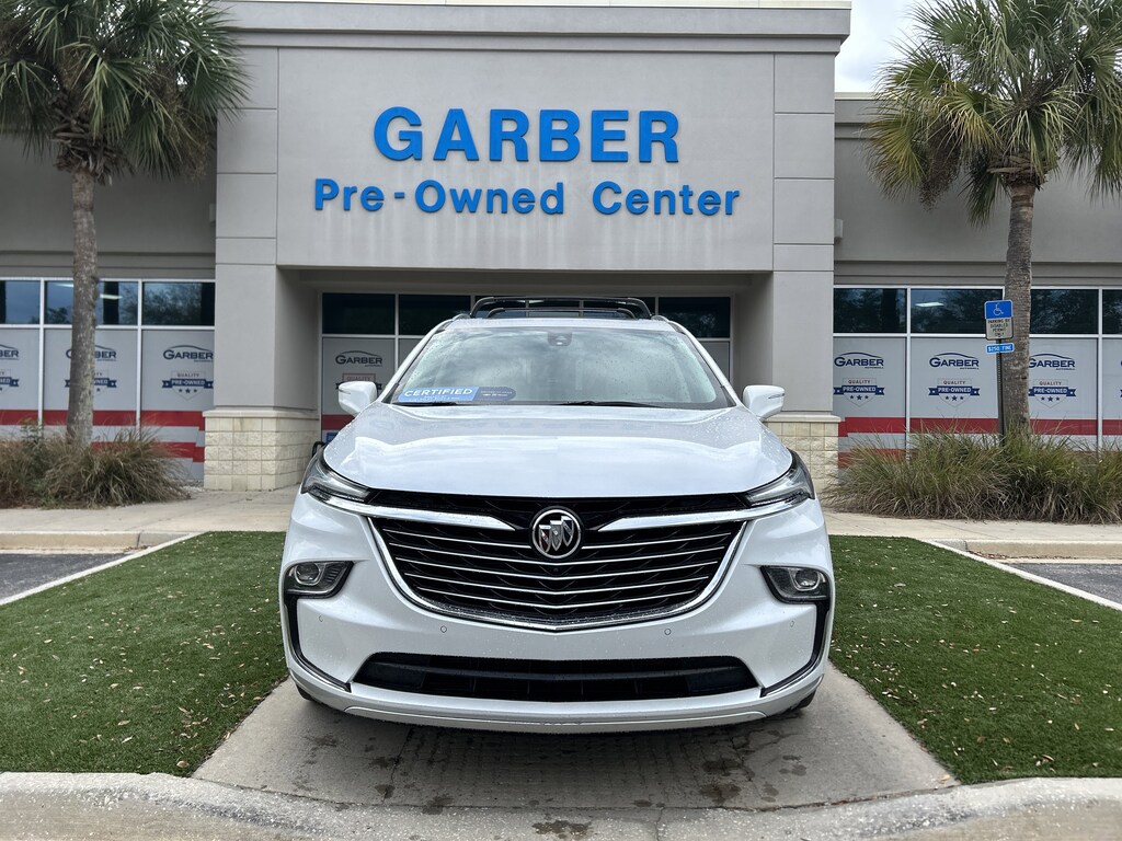 2023 Buick Enclave Premium Group CPO White Frost Tricoat FWD, 20" Polished Aluminum Wheels, 3rd row seats: split-bench, 4-Wheel Disc Brakes, 6-Way Power Front Passenger Seat Adjuster, 7-Passenger Seating, 8-Way Power Driver Seat Adjuster, ABS brakes, AM/FM radio: SiriusXM with 360L, Auto High-beam Headlights, Auto-dimming door mirrors, Auto-dimming Rear-View mirror, Automatic temperature control, Bose Performance-Enhanced 10-Speaker System, Delay-off headlights, Driver 4-Way Power Lumbar Seat Adjuster, Electronic Stability Control, Emergency communication system: OnStar and Buick connected services capable, Exterior Parking Camera Rear, Front & Rear Park Assist, Front Bucket Seats, Front dual zone A/C, Front Passenger 4-Way Power Lumbar Seat Adjuster, Front Power Sliding Moonroof, Garage door transmitter, Heads-Up Display, Heated door mirrors, Heated Driver & Front Passenger Seats, Heated rear seats, Heated Steering Wheel, Heavy-Duty Cooling System, Hitch Guidance w/Hitch View, Illuminated entry, Leather steering wheel, Low tire pressure warning, Memory Package, Memory seat, Navigation System, Perforated Leather-Appointed Seat Trim, Power door mirrors, Power Liftgate, Power windows, Rear air conditioning, Remote keyless entry, Security system, Speed control, Steering wheel memory, Steering wheel mounted audio controls, Telescoping steering wheel, Tilt steering wheel, Ventilated Driver & Front Passenger Seats, Wireless Apple CarPlay/Wireless Android Auto.