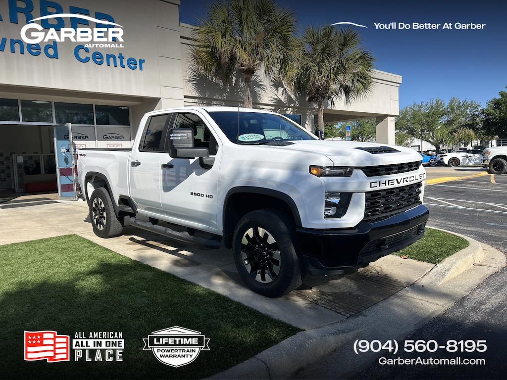 2020 Chevrolet Silverado 2500HD Custom Summit White WINDOW TINT, TONNEAU COVER, 6-Speed Automatic, 4WD, Black Cloth, 2-Speed Electronic Shift Transfer Case, 4-Wheel Disc Brakes, 6-Speaker Audio System, ABS brakes, AM/FM radio, Apple CarPlay/Android Auto, Bluetooth® For Phone, Electric Rear-Window Defogger, Electronic Cruise Control w/Set & Resume Speed, Electronic Stability Control, Exterior Parking Camera Rear, Front reading lights, Fully automatic headlights, Heated Vertical Trailering Mirrors, Illuminated entry, Integrated Trailer Brake Controller, LED Cargo Area Lighting, Locking Tailgate, Low tire pressure warning, Outside temperature display, Overhead console, Panic alarm, Passenger vanity mirror, Power Door Locks, Power windows, Premium audio system: Chevrolet Infotainment 3, Rear reading lights, Rear step bumper, Remote Keyless Entry, Remote Vehicle Starter System, Split folding rear seat, Tilt steering wheel, Wheels: 20" Machined Alum w/Black Painted Accents.
