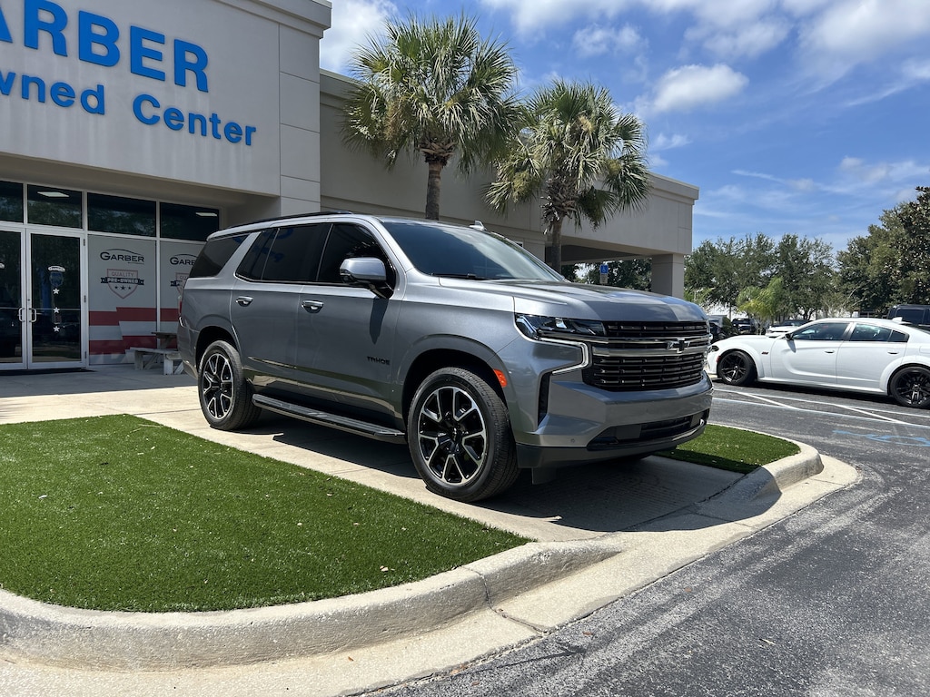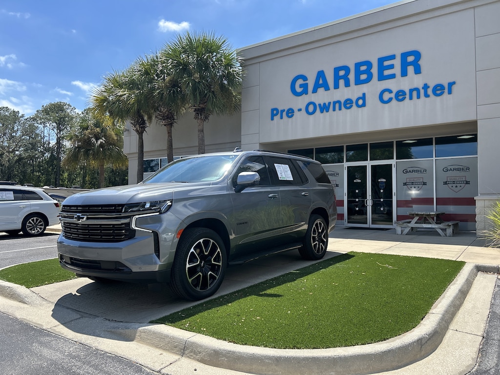 2022 Chevrolet Tahoe RST Satin Steel Metallic WINDOW TINT, Jet Black/Victory Red Leather, 10-Way Power Driver & Passenger Seat Adjusters, 2nd Row Pwr Release 60/40 Split-Folding Bench Seat, 4-Wheel Disc Brakes, Apple CarPlay/Android Auto, Auto High-beam Headlights, Auto-Dimming Inside Rear-View Mirror, Automatic temperature control, Bose 9-Speaker Stereo Audio System Feature, Driver vanity mirror, Electronic Stability Control, Emergency communication system: OnStar and Chevrolet connected services capable, Enhanced Driver Information Center, Four wheel independent suspension, Front Bucket Seats, Front dual zone A/C, Front reading lights, Fully automatic headlights, Garage door transmitter, Hands-Free Rear Power Programmable Liftgate, HD Surround Vision, Heated 2nd Row Outboard Seats, Heated Driver & Front Passenger Seats, Heated Steering Wheel, Illuminated entry, Infotainment Display, Lane Change Alert w/Side Blind Zone Alert, Leather steering wheel, Leather-Wrapped Steering Wheel, LED Daytime Running Lamps, Low tire pressure warning, Memory seat, Memory Settings, Memory Settings for Driver, Navigation System, Outside Heated Power-Adjustable Mirrors, Outside temperature display, Passenger vanity mirror, Perforated Leather Seat Trim, Power driver seat, Power Liftgate, Power passenger seat, Power Release 2nd Row Bucket Seats, Power Tilt & Telescopic Steering Column, Power windows, Premium Smooth Ride Suspension, Rain sensing wipers, Rear air conditioning, Rear Cross Traffic Alert, Rear Pedestrian Alert, Rear reading lights, Remote keyless entry, Remote Start, Security system, Set of 4 Wheel Locks (LPO), SiriusXM Radio w/360L, Speed control, Split folding rear seat, Steering wheel mounted audio controls, Telescoping steering wheel, Tilt steering wheel, Universal Home Remote, Wheels: 22" x 9" Bright Machined, Wireless Charging.