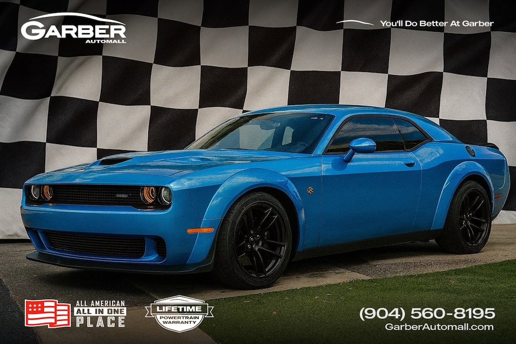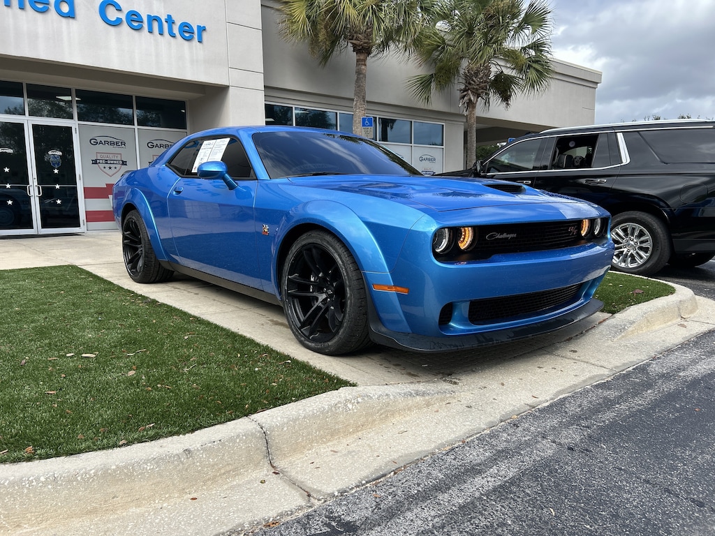 2023 Dodge Challenger R/T Scat Pack Widebody B5 Blue Pearlcoat WINDOW TINT, 4-Wheel Disc Brakes, 4G LTE Wi-Fi Hot Spot, 506 Watt Amplifier, 8.4" Touchscreen Display, 9 Amplified Speakers w/Subwoofer, ABS brakes, AM/FM radio: SiriusXM, Apple CarPlay/Android Auto, Auto-dimming Rear-View mirror, Automatic temperature control, Blind Spot & Cross Path Detection, Electronic Stability Control, Emergency communication system: SiriusXM Guardian, Four wheel independent suspension, Front Bucket Seats, Front dual zone A/C, Front fog lights, Fully automatic headlights, Garage door transmitter, HD Radio, Heated Front Seats, Heated Steering Wheel, High-Intensity Discharge Headlamps, Illuminated entry, Outside temperature display, ParkView Rear Back-Up Camera, Performance Shift Indicator, Power driver seat, Power Multi-Function Foldaway Mirrors, Power Sunroof, Power Tilt/Telescope Steering Column, Power windows, Radio: Uconnect 4C w/8.4" Display, Radio/Driver Seat/Mirrors Memory, Remote keyless entry, Scat Pack Logo Nappa/Alcantara Seat, Security system, Shark Fin Antenna, SiriusXM Satellite Radio, Speed control, Split folding rear seat, Sport steering wheel, Steering wheel mounted audio controls, Surround Sound, Ventilated Front Seats, Wheels: 20" x 11.0" Carbon Black Aluminum.