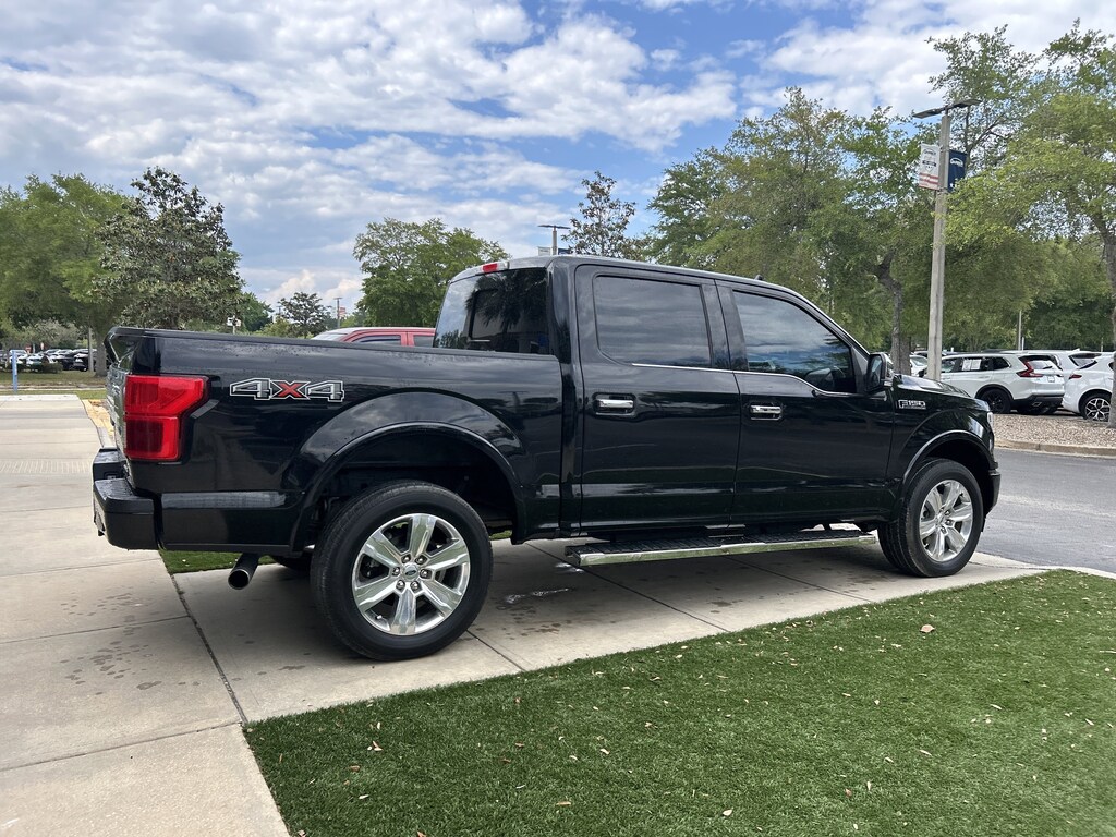 2020 Ford F-150 Platinum Black Metallic WINDOW TINT, 4WD, 10 Speakers, 20" Polished Aluminum Wheels, 4-Wheel Disc Brakes, ABS brakes, Adjustable pedals, AM/FM radio: SiriusXM, Auto High-beam Headlights, Auto tilt-away steering wheel, Auto-dimming door mirrors, Auto-dimming Rear-View mirror, Automatic temperature control, Class IV Trailer Hitch Receiver, Electronic Stability Control, Emergency communication system: SYNC 3 911 Assist, Equipment Group 700A Base, Exterior Parking Camera Rear, Front Bucket Seats, Front dual zone A/C, Front fog lights, Fully automatic headlights, Garage door transmitter, Genuine wood door panel insert, Heated door mirrors, Heated front seats, Heated rear seats, Heated steering wheel, Illuminated entry, Low tire pressure warning, Memory seat, Navigation System, Outside temperature display, Pedal memory, Power door mirrors, Power driver seat, Power passenger seat, Power windows, Radio: B&O Sound System by Bang & Olufsen, Rain sensing wipers, Rear step bumper, Remote keyless entry, Security system, Speed control, Split folding rear seat, Steering wheel memory, Steering wheel mounted audio controls, SYNC 3, Telescoping steering wheel, Tilt steering wheel, Ventilated front seats, Voice-Activated Touchscreen Navigation.