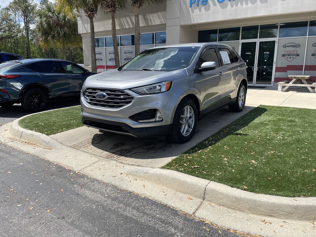 2021 Ford Edge SEL Silver Metallic WINDOW TINT, 110V/150W AC Power Outlet, 4-Wheel Disc Brakes, 6 Speakers, ABS brakes, ActiveX Seating Material Heated Bucket Seats, AM/FM radio: SiriusXM with 360L, Auto High-beam Headlights, Auto-dimming Rear-View mirror, Automatic temperature control, Compass, Driver vanity mirror, Electronic Stability Control, Emergency communication system: SYNC 4 911 Assist, Equipment Group 201A, FordPass Connect, Front Bucket Seats, Front dual zone A/C, Front fog lights, Front reading lights, Fully automatic headlights, Heated door mirrors, Heated front seats, Illuminated entry, Low tire pressure warning, Outside temperature display, Overhead console, Passenger vanity mirror, Perimeter Alarm, Power door mirrors, Power driver seat, Power Liftgate, Power passenger seat, Power windows, Rear reading lights, Remote keyless entry, Remote Start System, Speed control, Split folding rear seat, Steering wheel mounted audio controls, SYNC 4A w/Enhanced Voice Recognition, Telescoping steering wheel, Tilt steering wheel, Universal Garage Door Opener (UGDO), Wheels: 18" Sparkle Silver-Painted Aluminum, Wireless Charging Pad.
