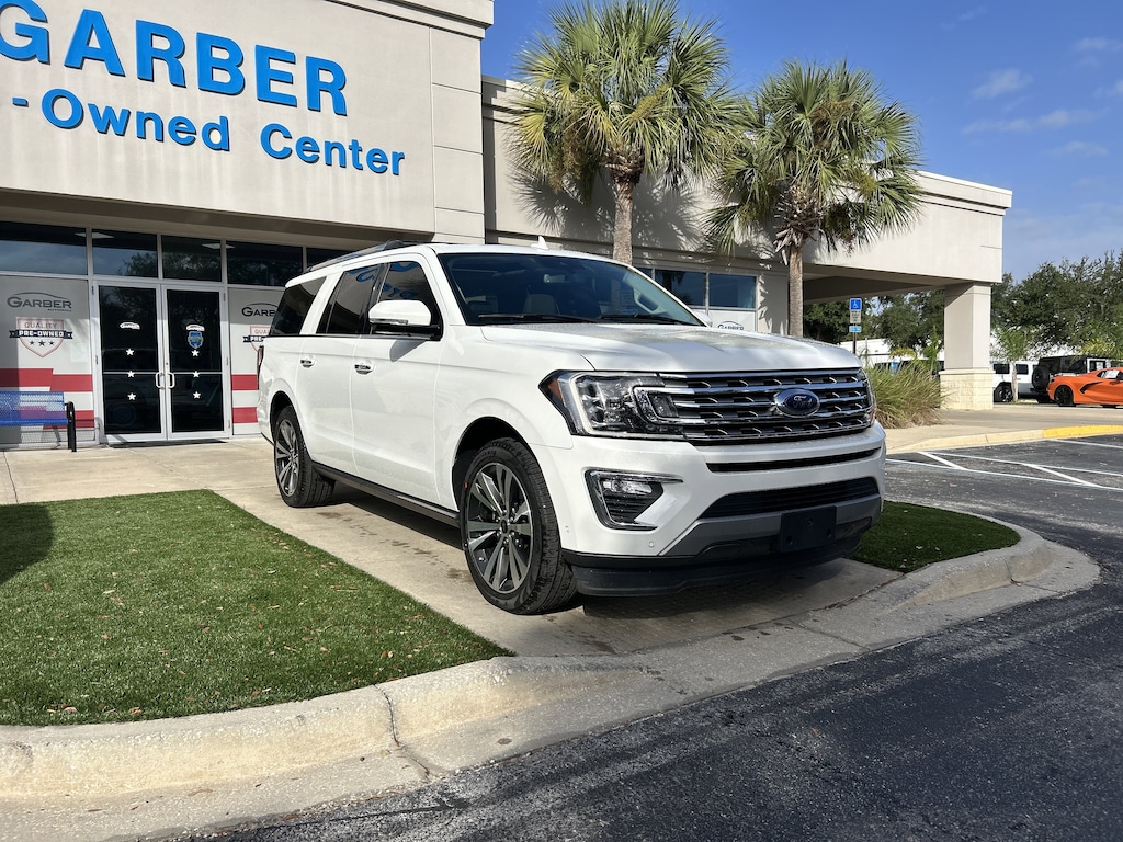2021 Ford Expedition Max Limited White 12 Speakers, 2nd Row Leather-Trimmed Captain's Chairs w/Armrest, 3rd row seats: split-bench, 4-Wheel Disc Brakes, Adjustable pedals, Auto High-beam Headlights, Auto-dimming door mirrors, Auto-dimming Rear-View mirror, Automatic temperature control, Electronic Stability Control, Emergency communication system: SYNC 3 911 Assist, Enhanced Active Park Assist System, Exterior Parking Camera Rear, Front Bucket Seats, Front dual zone A/C, Front fog lights, Fully automatic headlights, Garage door transmitter, Heated door mirrors, Heated front seats, Heated rear seats, Heated steering wheel, Illuminated entry, Leather steering wheel, LED Headlamps & Fog Lamps, Low tire pressure warning, Memory seat, Navigation System, Outside temperature display, Panoramic Vista Roof, Passenger vanity mirror, Pedal memory, Power driver seat, Power Liftgate, Power passenger seat, Power windows, Radio: B&O Sound System by Bang & Olufsen, Rain sensing wipers, Rear air conditioning, Rear audio controls, Rear reading lights, Reclining 3rd row seat, Remote keyless entry, Security system, SiriusXM Satellite Radio, Speed control, Split folding rear seat, Steering wheel memory, Steering wheel mounted audio controls, SYNC 3 Communications & Entertainment System, Telescoping steering wheel, Tilt steering wheel, Ventilated front seats, Wheels: 20" Premium Dark Tarnish-Painted.