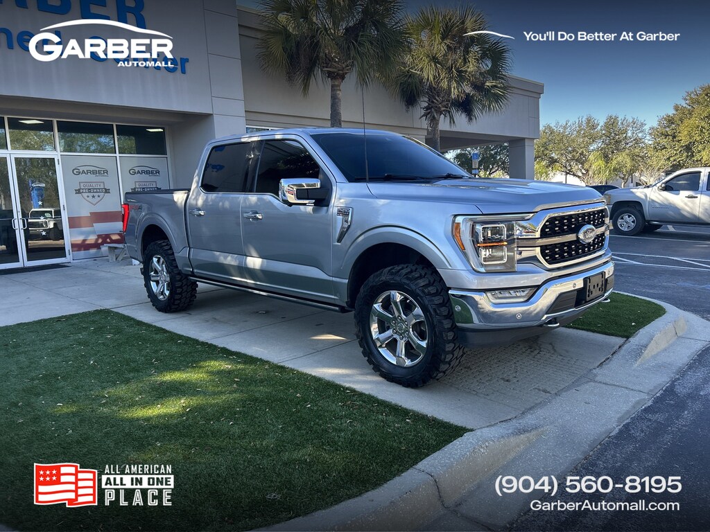 2021 Ford F-150 King Ranch Silver 4WD, 360 Degree Camera, 4-Wheel Disc Brakes, 8 Speakers, ABS brakes, Active Park Assist 2.0, Adjustable pedals, AM/FM radio: SiriusXM with 360L, Auto High-beam Headlights, Auto tilt-away steering wheel, Auto-dimming door mirrors, Auto-dimming Rear-View mirror, Automatic temperature control, BlueCruise Hands-Free Driving, Class IV Trailer Hitch Receiver, Electronic Locking w/3.55 Axle Ratio, Electronic Stability Control, Emergency communication system: SYNC 4 911 Assist, Extended Range 36 Gallon Fuel Tank, Exterior Parking Camera Rear, Ford Co-Pilot360 Active 2.0 Package, Front Bucket Seats, Front dual zone A/C, Front fog lights, Fully automatic headlights, FX4 Off-Road Package, Garage door transmitter, Heated door mirrors, Heated front seats, Heated rear seats, Heated steering wheel, Hill Descent Control, Illuminated entry, Integrated Trailer Brake Controller, King Ranch Leather Bucket Seats, LED Sideview Mirror Spotlights, Low tire pressure warning, Memory seat, Monotube Rear Shocks, Off-Road Tuned Front Shock Absorbers, Pedal memory, Power door mirrors, Power driver seat, Power passenger seat, Power Tailgate, Power windows, Power-Deployable Running Boards, Pro Trailer Backup Assist, Radio: B&O Sound System by Bang & Olufsen, Rain sensing wipers, Rear step bumper, Remote keyless entry, Rock Crawl Mode, Security system, Speed control, Split folding rear seat, Steering wheel memory, Steering wheel mounted audio controls, SYNC 4 w/Enhanced Voice Recognition, Telescoping steering wheel, Tilt steering wheel, Ventilated front seats, Wheels: 20" Chrome-Like PVD.