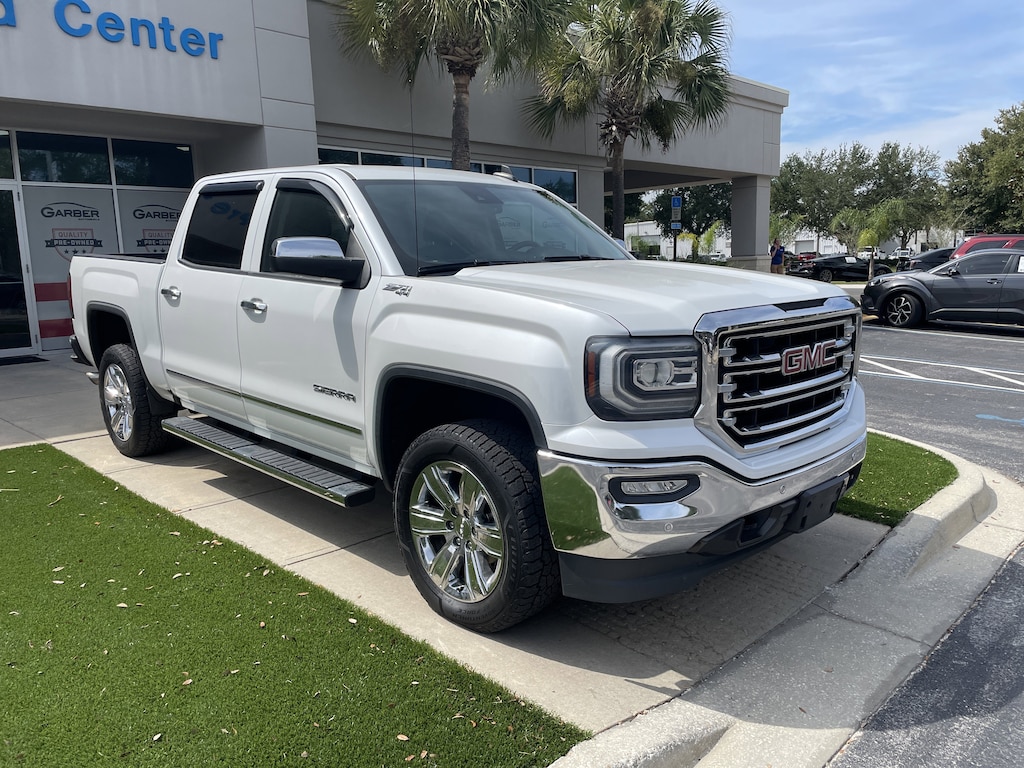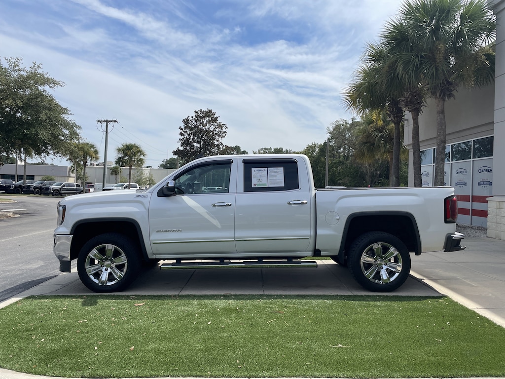 2018 GMC Sierra 1500 SLT White Frost Tricoat 8-Speed Automatic with Overdrive, 4WD, Jet Black Leather, 10-Way Power Driver's Seat Adjuster, 110-Volt AC Power Outlet, 2-Speed Active Electronic AutoTrac Transfer Case, 20" x 9" Chrome Clad Aluminum Wheels, 4-Wheel Disc Brakes, 6" Rectangular Chromed Tubular Assist Steps, Adjustable pedals, Auto-dimming door mirrors, Auto-dimming Rear-View mirror, Automatic temperature control, Auxiliary External Transmission Oil Cooler, Bose Speaker System, CD player, Compass, Driver & Front Passenger Illuminated Vanity Mirrors, Driver vanity mirror, Dual-Zone Automatic Climate Control, Electronic Stability Control, Exterior Parking Camera Rear, EZ Lift & Lower Tailgate, Floor Mounted Console, Forward Collision Alert, Front fog lights, Front Full Feature Power Reclining Bucket Seats, Front reading lights, Fully automatic headlights, Garage door transmitter, GMC 4G LTE, GMC Connected Access, HD Radio, Heated & Ventilated Front Bucket Seats, Heated Driver & Front Passenger Seats, Heavy Duty Suspension, Heavy-Duty Rear Locking Differential, High-Intensity Discharge Headlights, High-Performance LED Headlamps, Illuminated entry, Integrated Trailer Brake Controller, IntelliBeam Automatic High Beam On/Off Headlight, Lane Keep Assist, Leather Appointed Seat Trim, Leather Wrapped Heated Steering Wheel, LED Cargo Box Lighting, LED Tailamps w/Signature, Low Speed Forward Automatic Braking, Low tire pressure warning, Memory seat, Navigation System, OnStar & GMC Connected Services Capable, Outside temperature display, Passenger vanity mirror, Power Adjustable Pedals, Power driver seat, Power Folding & Adjustable Heated Outside Mirrors, Power passenger seat, Power Sliding Rear Window w/Defogger, Power Sunroof, Power windows, Rear reading lights, Rear step bumper, Rear Wheelhouse Liners, Remote Keyless Entry, Remote Locking Tailgate, Remote Vehicle Starter System, SiriusXM Satellite Radio, Speed control, Split folding rear seat, Spray-On Pickup Box Bed Liner w/GMC Logo, Steering Wheel Audio Controls, Telescoping steering wheel, Theft Deterrent System (Unauthorized Entry), Thin Profile LED Fog Lamps, Tilt steering wheel, Ultrasonic Front & Rear Park Assist, Universal Home Remote, Wireless Charging.