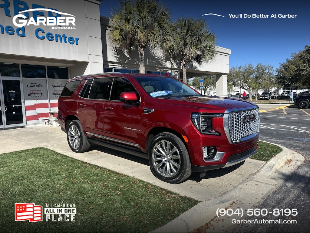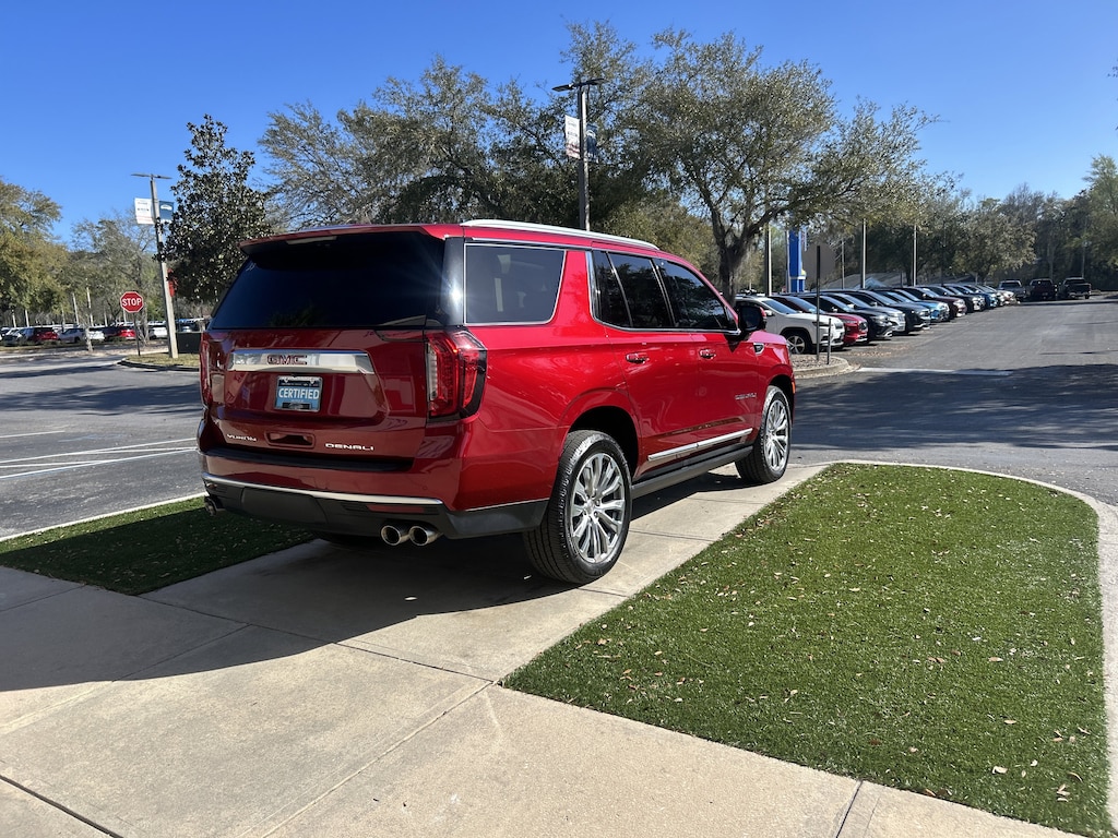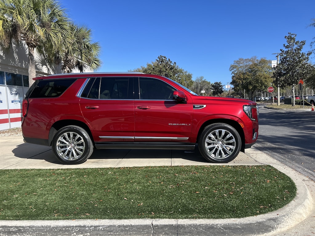 2023 GMC Yukon Denali CPO Volcanic Red Tintcoat WINDOW TINT, 15" Diagonal Multi-Color Head-Up Display, 3rd Row 60/40 Power-Folding Split-Bench Seat, 4-Wheel Disc Brakes, ABS brakes, Adaptive Cruise Control, Adaptive suspension, AM/FM radio: SiriusXM with 360L, Apple CarPlay/Android Auto, Auto High-beam Headlights, Auto-dimming door mirrors, Auto-dimming Rear-View mirror, Auto-leveling suspension, Automatic Emergency Braking, Automatic temperature control, Bose 14-Speaker Surround w/CenterPoint, Dual Exhaust System, Dual-Pane Panoramic Power Sunroof, Electronic Stability Control, Emergency communication system: OnStar and GMC connected services capable, Enhanced Automatic Emergency Braking, Following Distance Indicator, Forward Collision Alert, Front & Rear Park Assist, Front Bucket Seats, Front dual zone A/C, Front fog lights, Front Pedestrian Braking, Fully automatic headlights, Galvano Bodyside Moldings, Garage door transmitter, Hands-Free Power Programmable Rear Liftgate, HD Surround Vision, Heads-Up Display, Heated & Ventilated Driver & Front Passenger Seats, Heated 2nd Row Outboard Position Seats, Heated door mirrors, Heated rear seats, Heated Steering Wheel, Illuminated entry, Inside Rear-View Auto-Dimming Mirror, IntelliBeam Automatic High Beam On/Off, Lane Change Alert w/Side Blind Zone Alert, Lane Keep Assist w/Lane Departure Warning, Low tire pressure warning, Magnetic Ride Control Suspension, Memory seat, Navigation System, Outside Heated Power-Adjustable Mirrors, Perforated Leather Seating Surfaces, Power driver seat, Power Liftgate, Power Release 2nd Row Bucket Seats, Power Tilt & Telescopic Steering Column, Power windows, Power-Retractable Assist Steps, Rain sensing wipers, Rear air conditioning, Rear Cross Traffic Alert, Rear Pedestrian Alert, Remote keyless entry, Safety Alert Seat, Security system, Steering wheel memory, Steering wheel mounted audio controls, Telescoping steering wheel, Tilt steering wheel, Universal Home Remote, Wheels: 22" x 9" Bright Machined Aluminum, Wireless Charging.