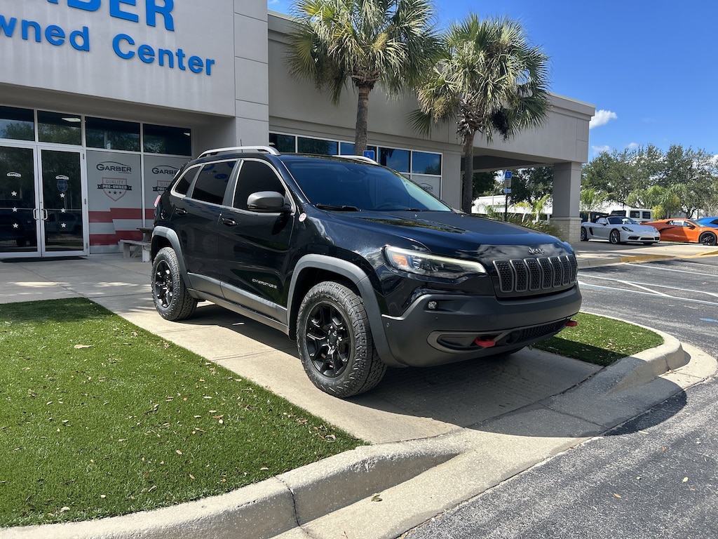 2019 Jeep Cherokee Trailhawk Diamond Black Crystal Pearlcoat WINDOW TINT, 4-Wheel Disc Brakes, 4G LTE Wi-Fi Hot Spot, 8.4" Touchscreen Display, Adaptive Cruise Control w/Stop & Go, Advanced Brake Assist, Apple CarPlay/Android Auto, Auto High Beam Headlamp Control, Auto-Dimming Rear-View Mirror, Automatic temperature control, Auxiliary Transmission Oil Cooler, Dual Bright Exhaust Tips, Electronic Stability Control, Engine Oil Cooler, Exterior Mirrors w/Memory, For Details Visit DriveUconnect.com, Four wheel independent suspension, Front Bucket Seats, Front dual zone A/C, Front fog lights, Full Speed Forward Collision Warning Plus, Fully automatic headlights, Google Android Auto, GPS Antenna Input, GPS Navigation, Hands-Free Power Liftgate, HD Radio, Heated Front Seats, Hill Descent Control, Illuminated entry, Integrated Voice Command w/Bluetooth, Lane Departure Warning Plus, Leather Shift Knob, Low tire pressure warning, Panic alarm, Parallel/Perpendicular Park/Unpark Assist w/Stop, ParkView Rear Back-Up Camera, Power door mirrors, Power driver seat, Power Driver/Passenger 4-Way Lumbar Adjust, Power windows, Premium Leather Trimmed Bucket Seats, Radio: Uconnect 4C Nav w/8.4" Display, Radio/Driver Seat/Exterior Mirrors Memory, Rain Sensitive Windshield Wipers, Remote keyless entry, Remote Start System, Security Alarm, Side Distance Warning, SiriusXM Satellite Radio, SiriusXM Travel Link, Split folding rear seat, Steering wheel mounted audio controls, Telescoping steering wheel, Tilt steering wheel, Universal Garage Door Opener, USB Host Flip, Ventilated Front Seats, Wheels: 17" x 7.5" Black Painted Aluminum.
