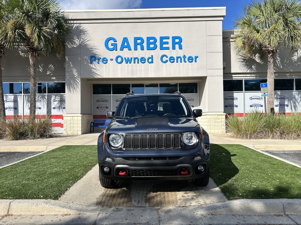 2021 Jeep Renegade Trailhawk Slate Blue Pearlcoat 4 Pin Wiring Harness, 4-Wheel Disc Brakes, 6 Speakers, ABS brakes, Alloy wheels, AM/FM radio: SiriusXM, Apple CarPlay/Android Auto, Auto-dimming Rear-View mirror, Automatic temperature control, Class III Receiver Hitch, Compass, Driver vanity mirror, Dual-Pane Panoramic Power Sunroof, Electronic Stability Control, Emergency communication system: SiriusXM Guardian, Four wheel independent suspension, Front Bucket Seats, Front dual zone A/C, Front fog lights, Front reading lights, Fully automatic headlights, Heated door mirrors, Heated front seats, Heated steering wheel, Illuminated entry, Kenwood Premium Audio System, Leather Shift Knob, Leather steering wheel, Low tire pressure warning, Navigation System, Outside temperature display, ParkView Rear Back-Up Camera, Passenger vanity mirror, Power door mirrors, Power driver seat, Power windows, Radio: Uconnect 4C Nav w/8.4" Display, Rain sensing wipers, Remote keyless entry, Security system, Speed control, Split folding rear seat, Steering wheel mounted audio controls, Telescoping steering wheel, Tilt steering wheel, Trailer Tow Group.