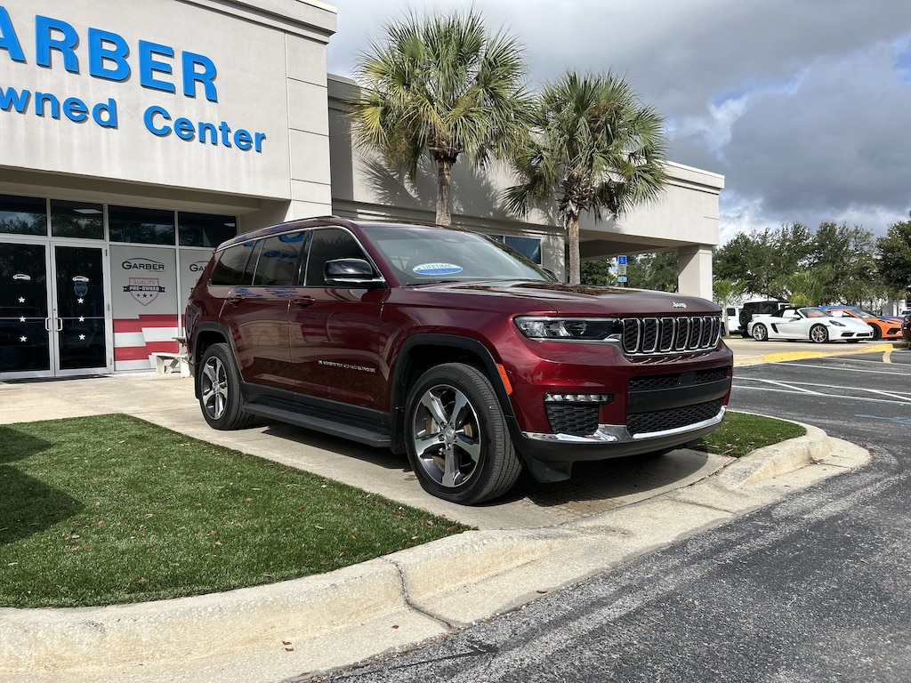 2023 Jeep Grand Cherokee L Limited Velvet Red Pearlcoat 3rd row seats: split-bench, 4-Wheel Disc Brakes, 506 Watt Amplifier, 9 Amplified Speakers w/Subwoofer, Active Noise Control System, AM/FM radio: SiriusXM with 360L, Auto High-beam Headlights, Automatic temperature control, Compass, Driver vanity mirror, Electronic Stability Control, Emergency communication system, Four wheel independent suspension, Front Bucket Seats, Front dual zone A/C, Front fog lights, Front reading lights, Garage door transmitter, Heated door mirrors, Heated front seats, Heated rear seats, Heated steering wheel, Illuminated entry, Low tire pressure warning, Memory seat, MOPAR Paint Protection Film, Navigation System, Outside temperature display, ParkView Rear Back-Up Camera, Passenger vanity mirror, Power door mirrors, Power driver seat, Power Liftgate, Power passenger seat, Power windows, Radio: Uconnect 5 Nav w/10.1" Display, Rear air conditioning, Rear Load Leveling Suspension, Rear reading lights, Reclining 3rd row seat, Remote keyless entry, Security system, Speed control, Split folding rear seat, Steering wheel mounted audio controls, Telescoping steering wheel, Tilt steering wheel, Wheels: 20" x 8.5" Machined/Painted Aluminum.