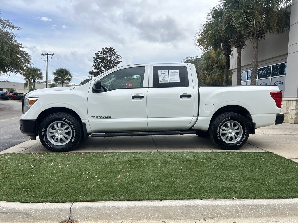 2018 Nissan Titan S Glacier White 4WD, 4-Pin/7-Pin Wiring Harness Connector (Rear Bumper), 4-Wheel Disc Brakes, 6 Speakers, ABS brakes, AM/FM radio, CD player, Electronic Stability Control, Front Overhead Console, Illuminated entry, Low tire pressure warning, Passenger vanity mirror, Power windows, Rear step bumper, Receiver Hitch, Remote keyless entry, S Utility Package, Security system, Speed control, Split folding rear seat, Spray-On Bedliner, Steering wheel mounted audio controls, Telescoping steering wheel, Tilt steering wheel, Wheels: 18" x 8" Silver-Metallic Styled Steel.