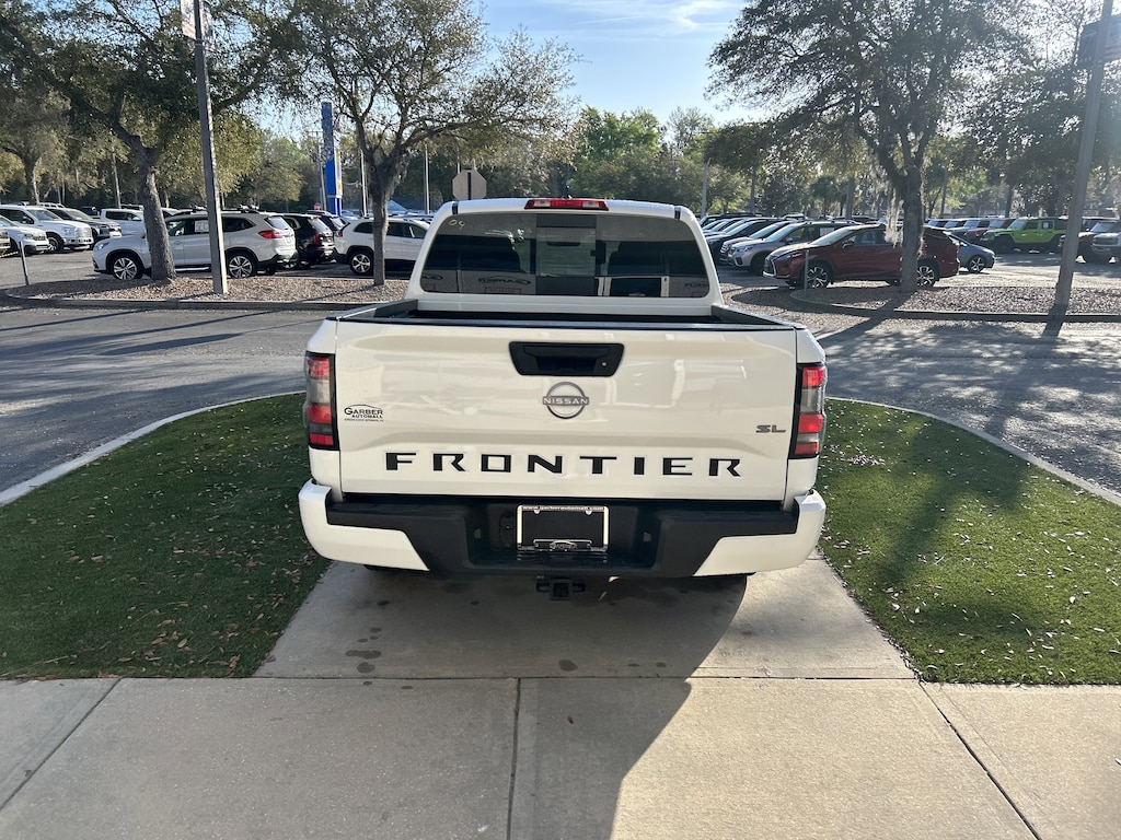 2024 Nissan Frontier SL Glacier White 4-Wheel Disc Brakes, ABS brakes, Alloy wheels, Apple CarPlay/Android Auto, Automatic temperature control, Driver vanity mirror, Electronic Stability Control, Electronic Tailgate Lock, Fender Premium Audio System w/10 Speakers, Front dual zone A/C, Front fog lights, Front reading lights, Fully automatic headlights, Garage door transmitter: HomeLink, Heated door mirrors, Heated Front Bucket Seats, Heated steering wheel, Illuminated entry, Leather Shift Knob, Leather steering wheel, Leather-Appointed Seat Trim, Low tire pressure warning, Overhead console, Passenger vanity mirror, Power door mirrors, Power driver seat, Power moonroof, Power windows, Rear step bumper, Remote keyless entry, Security system, Speed control, Split folding rear seat, Steering wheel mounted audio controls, Tilt steering wheel, USB Charging Cable Kit.