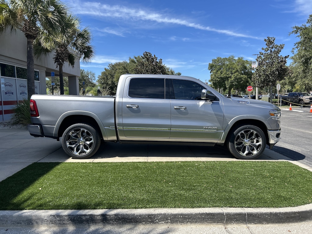 2019 Ram 1500 Limited Billet Silver Metallic Clearcoat TONNEAU COVER, 12" Touchscreen Display, 3.92 Rear Axle Ratio, 4-Wheel Disc Brakes, Adaptive Cruise Control w/Stop & Go, Adjustable pedals, AM/FM radio: SiriusXM with 360L, Anti-Spin Differential Rear Axle, Apple CarPlay/Android Auto, Auto High-beam Headlights, Auto-dimming Rear-View mirror, Auto-leveling suspension, Automatic temperature control, Compass, Dome Dual LED Reading Lamp, Driver vanity mirror, Dual-Pane Panoramic Sunroof, Electronic Stability Control, Emergency communication system: SiriusXM Guardian, Front Bucket Seats, Front dual zone A/C, Front fog lights, Front reading lights, Fully automatic headlights, Garage door transmitter, harman/kardon 19 Speaker Premium Sound, HD Radio, Heated door mirrors, Heated front seats, Heated rear seats, Heated steering wheel, Illuminated entry, Leather steering wheel, LED Dome/Reading Lamp, Low tire pressure warning, Memory seat, Navigation System, Parallel & Perp Park Assist w/Stop, ParkView Rear Back-Up Camera, Passenger vanity mirror, Pedal memory, Power door mirrors, Power driver seat, Power passenger seat, Power windows, Premium Leather Trimmed Bucket Seats, Rear step bumper, Remote keyless entry, Security system, SiriusXM w/360L, Split folding rear seat, Steering wheel mounted audio controls, Telescoping steering wheel, Tilt steering wheel, Trailer Brake Control, Trailer Tow Mirrors, Ventilated front seats, Wheels: 22" x 9" Polish/Painted w/Inserts.
