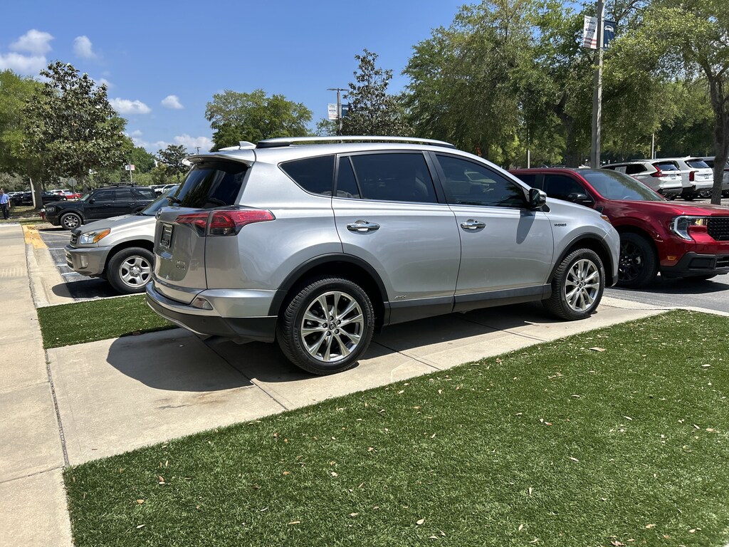 2018 Toyota RAV4 Hybrid Limited Silver Sky Metallic WINDOW TINT, 2.5L 4-Cylinder, 4-Wheel Disc Brakes, 6 Speakers, ABS brakes, Advanced Technology Package, AM/FM radio: SiriusXM, Auto High-beam Headlights, Auto-dimming Rear-View mirror, Automatic temperature control, Driver vanity mirror, Electronic Stability Control, Exterior Parking Camera Rear, Four wheel independent suspension, Front dual zone A/C, Front fog lights, Front reading lights, Fully automatic headlights, Garage door transmitter: HomeLink, Heated door mirrors, Heated Front Sport Seats, Illuminated entry, Leather Shift Knob, Leather steering wheel, Low tire pressure warning, Memory seat, Navigation System, Outside temperature display, Overhead console, Panic alarm, Panoramic View Monitor, Passenger vanity mirror, Power door mirrors, Power driver seat, Power Liftgate, Power moonroof, Power windows, Radio: Premium JBL Audio w/Navigation, Remote keyless entry, Roof rack, Speed control, Split folding rear seat, Steering wheel mounted audio controls, Telescoping steering wheel, Tilt steering wheel, Wheels: 18" x 7.5J 5-Spoke Superchrome Alloy.
